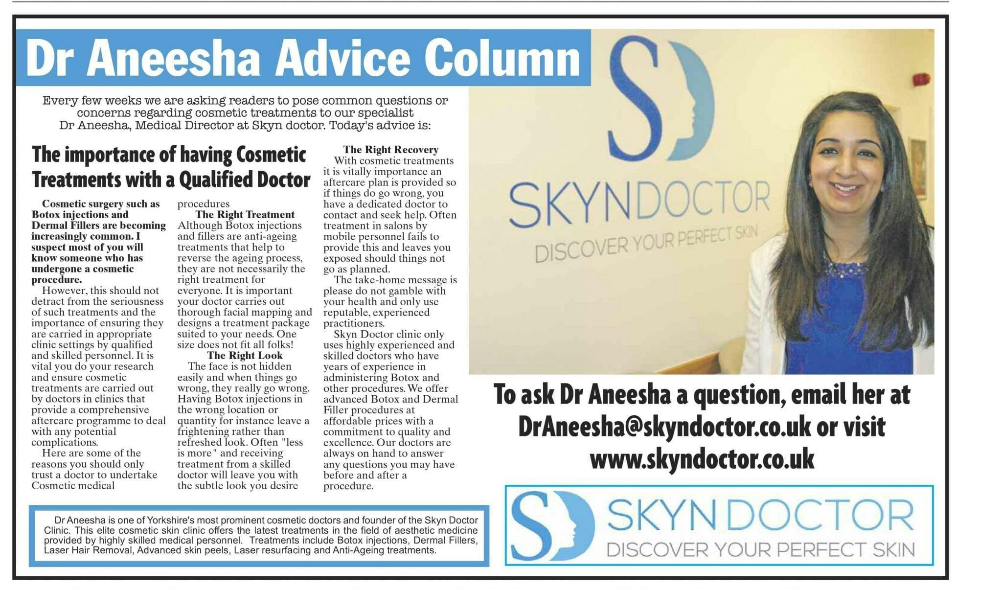 - The Right Recovery; With cosmetic treatments it is vitally importance an aftercare plan is provided so if things do go wrong, you have a dedicated doctor to contact and seek help. Often treatment in salons by mobile personnel fails to provide this and leaves you exposed should things not go as planned.