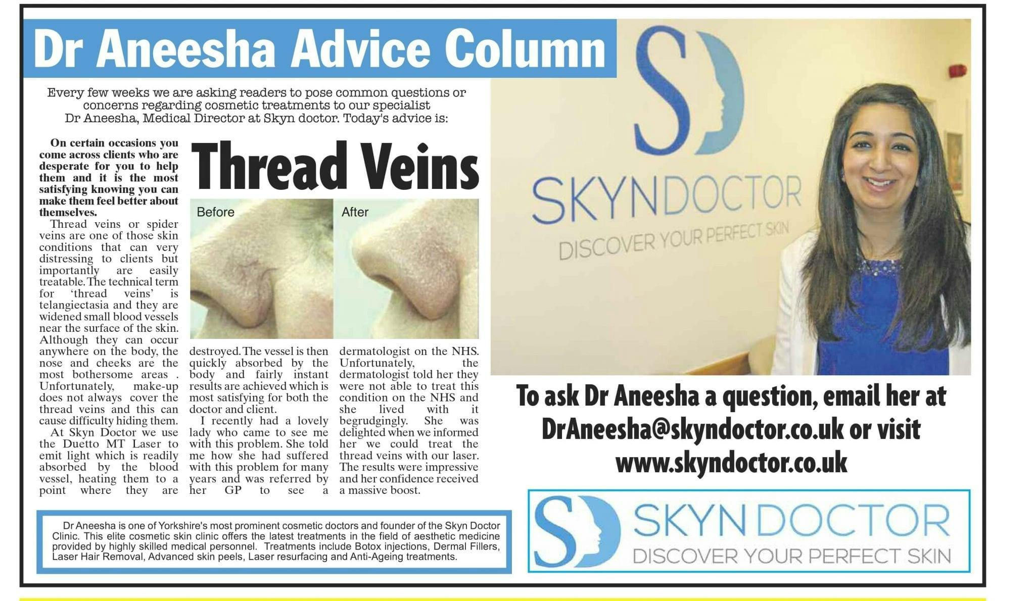 Thread veins or spider veins are one of those skin conditions that can very distressing to clients but importantly are easily treatable.