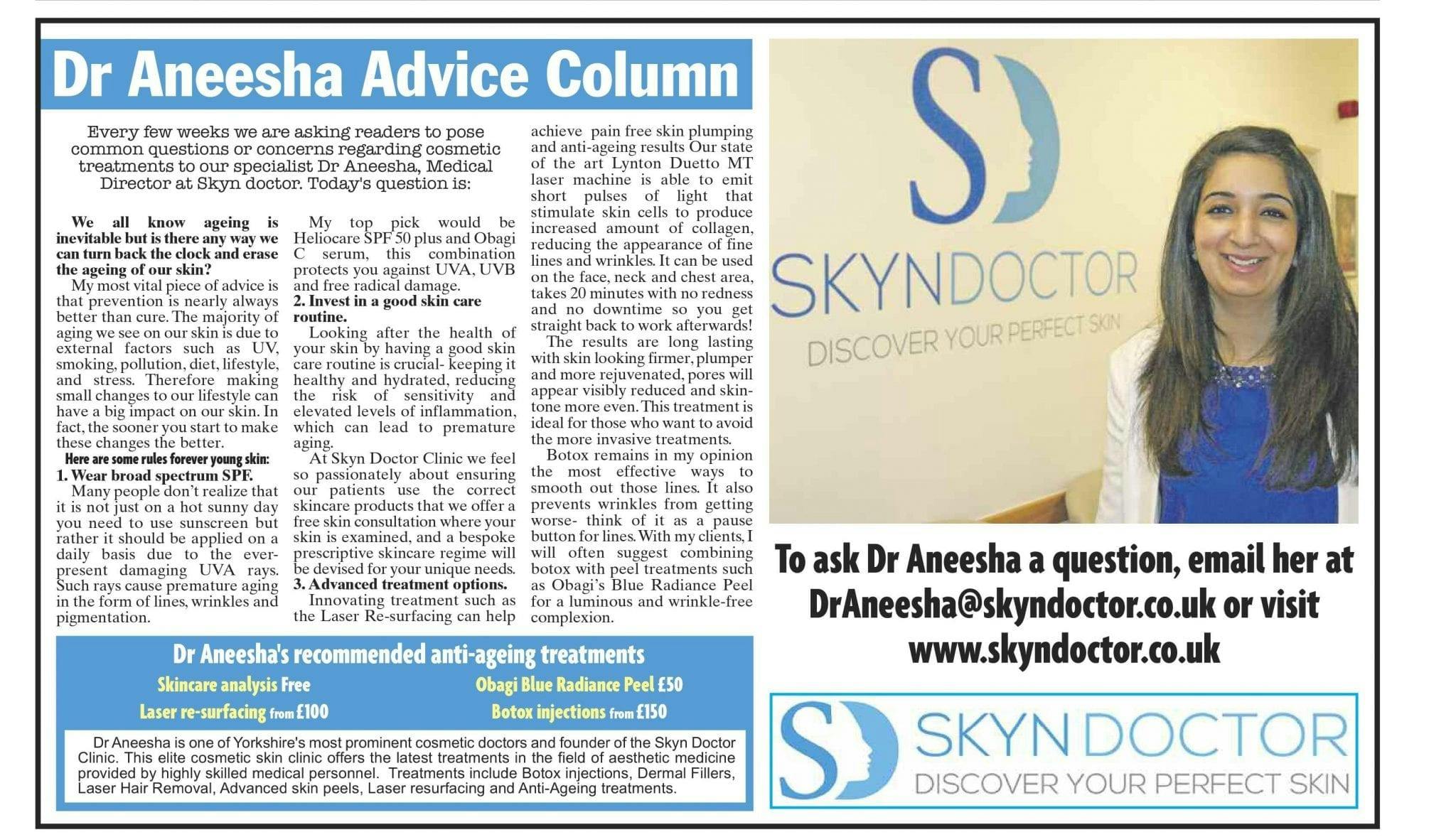 Dr Aneesha is one of Yorkshire’s most prominent cosmetic doctors and founder of the Skyn Doctor Clinic. This elite cosmetic skin clinic offers the latest treatments in the field of aesthetic medicine provided by highly skilled medical personnel. Treatments include Botox injections, Dermal Fillers, Laser Hair Removal, Advanced skin peels, Laser resurfacing and Anti-Ageing treatments.